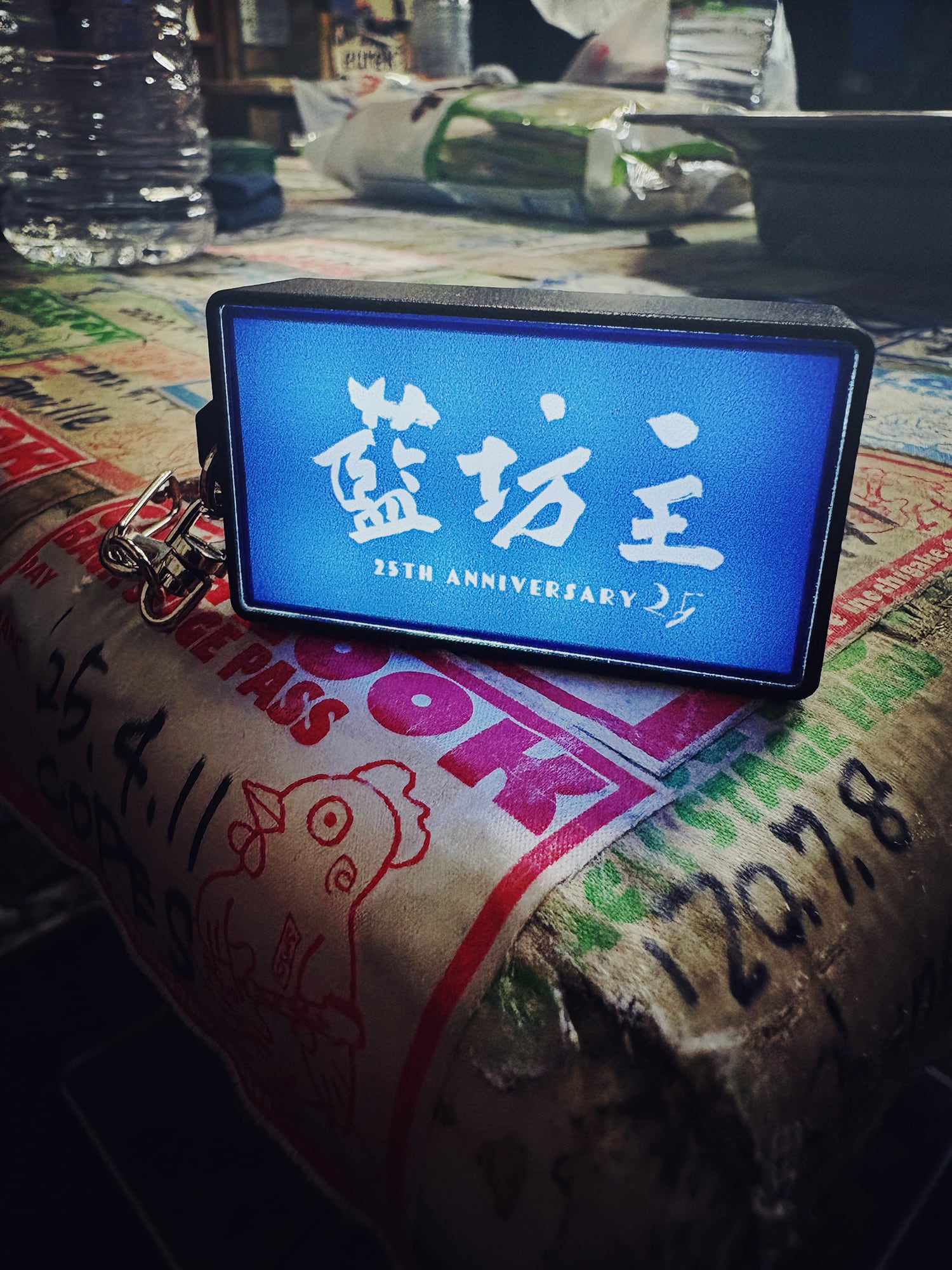 LEDライトで発光する漢字ロゴキーホルダー。